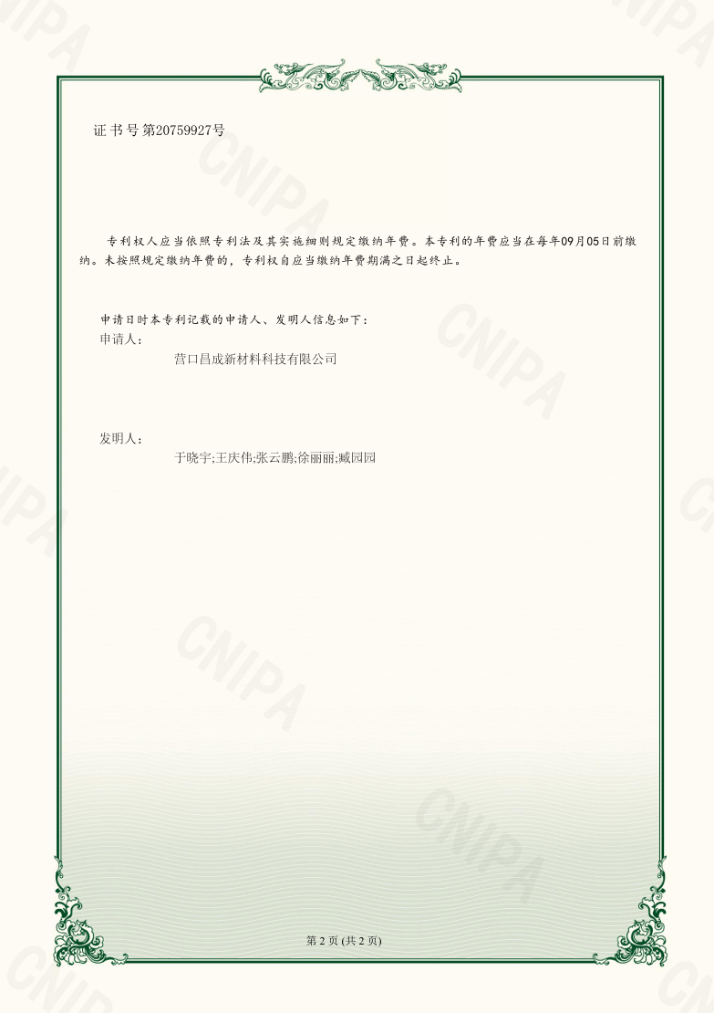 營(yíng)口昌成新材料科技有限公司 版權(quán)所有(C)2021?網(wǎng)絡(luò)支持?中國(guó)化工網(wǎng)?全球化工網(wǎng)?生意寶?網(wǎng)盛建站?著作權(quán)聲明  遼ICP備2021005949號(hào)